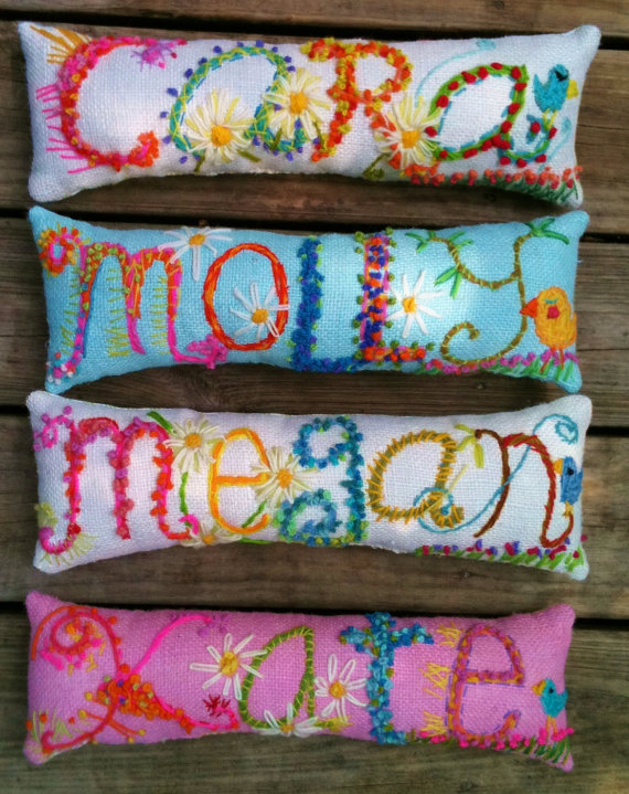 I found these bohemian embroidered name pillows on Etsy from seller YelliKelli. They would make a really cute gift for pretty much any age. You aren’t just limited to first names either, she will do last names, words, etc.